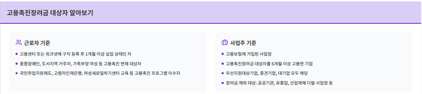 - 장려금 제외 대상: 공공기관, 유흥업, 산업재해 다발 사업장 등