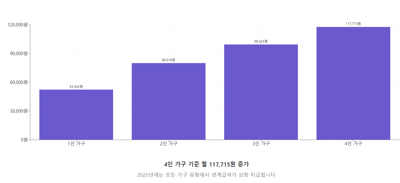 | 4인 가구 | 1,833,572원 | 1,951,287원 | +117,715원 |