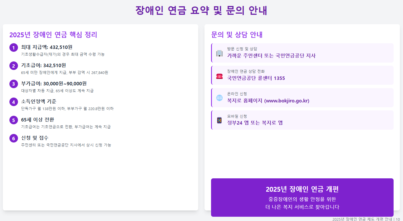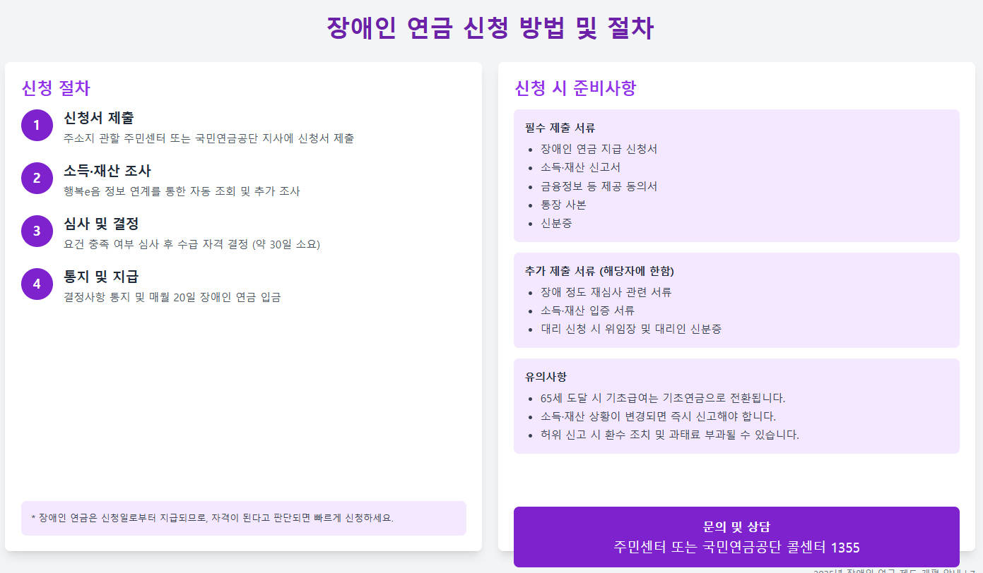 - 장애인 연금 금액은 신청일 기준으로 지급되므로, 빨리 신청할수록 유리합니다.