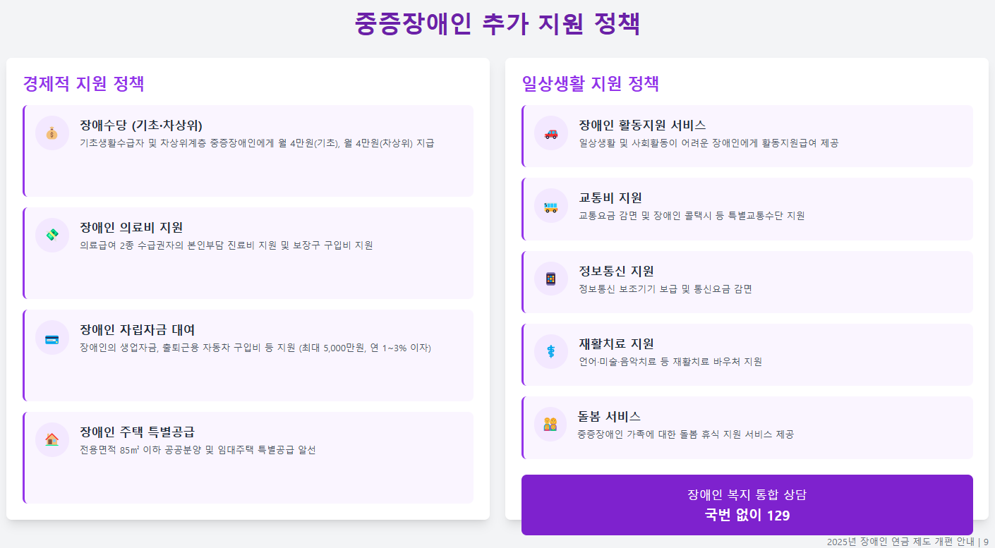 - 장애인 연금 금액 보전을 위해 필수적인 부가급여입니다.