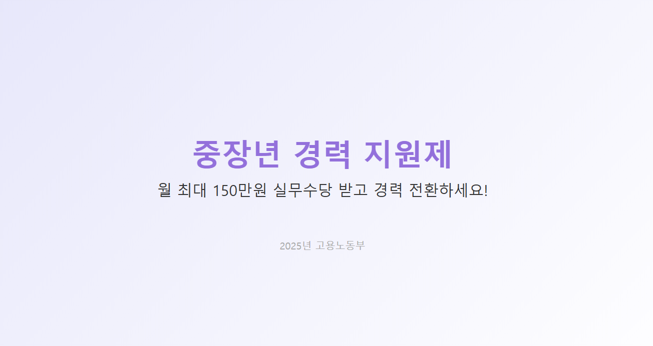 중장년 경력 지원제가 2025년부터 본격 시행됩니다. 이 제도는 중장년이 새로운 분야에서 경력을 쌓고 재취업에 성공할 수 있도록 도와주는 정부 지원제입니다. 특히 월 최대 150만원까지 받을 수 있어 중장년 재취업 준비자에게 실질적인 도움이 됩니다.